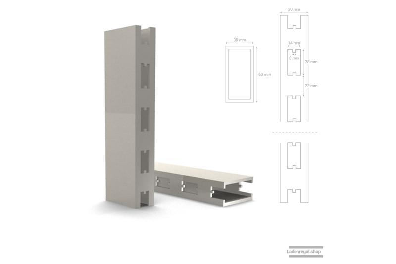 Endständer zum Abschluss einer Regalreihe in der von Ihnen gewählten Höhe und Tiefe, passend zu den Elementen aus dem Ladenregal-Konfigurator.